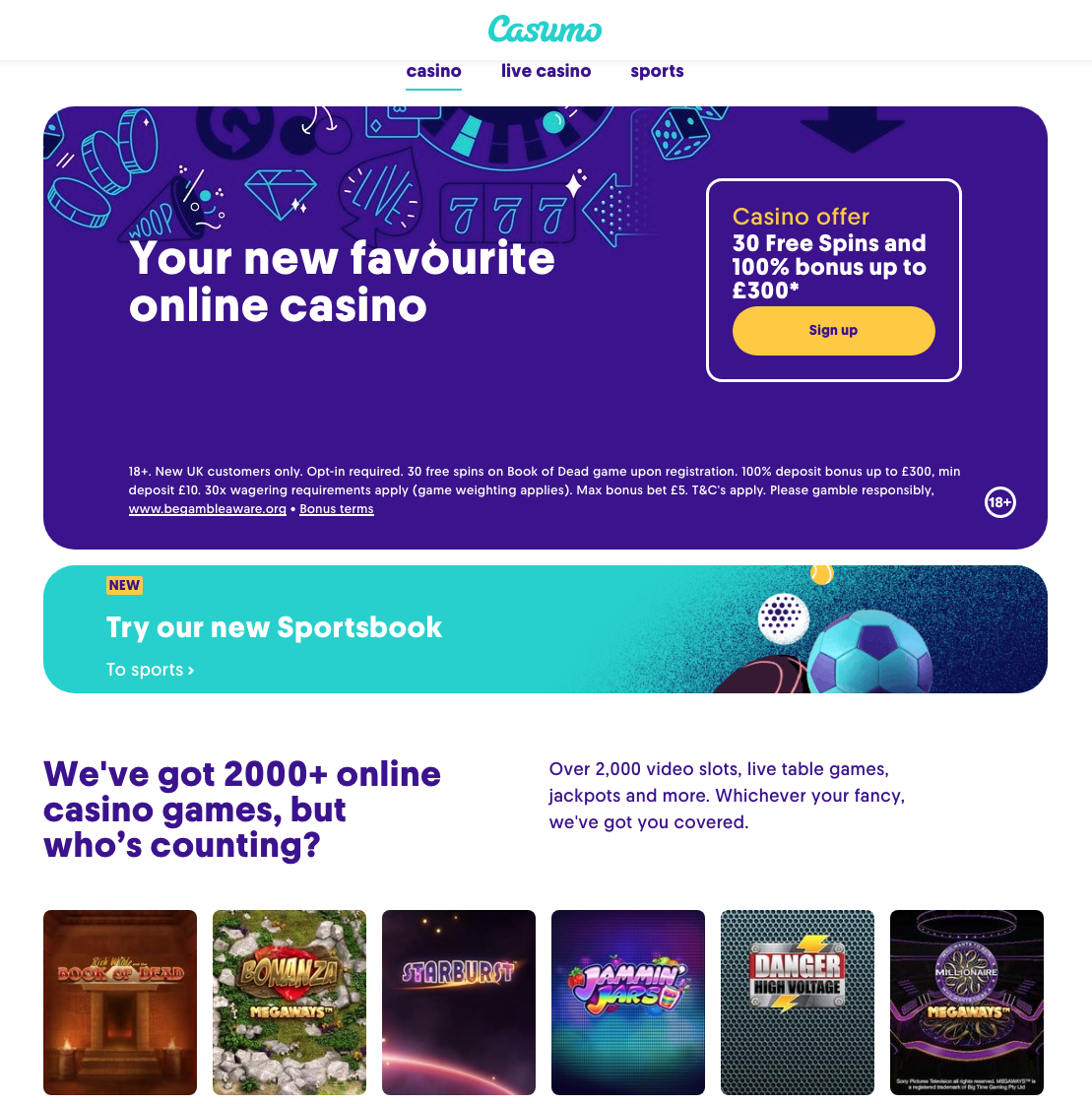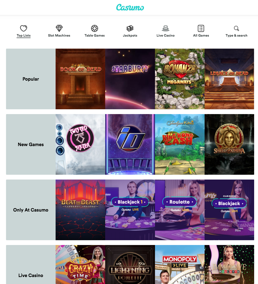With 27 software providers on board, Casumo's game variety is genuinely impressive. If you like discovering lesser-known studios alongside the big names, this is a good place to do it.